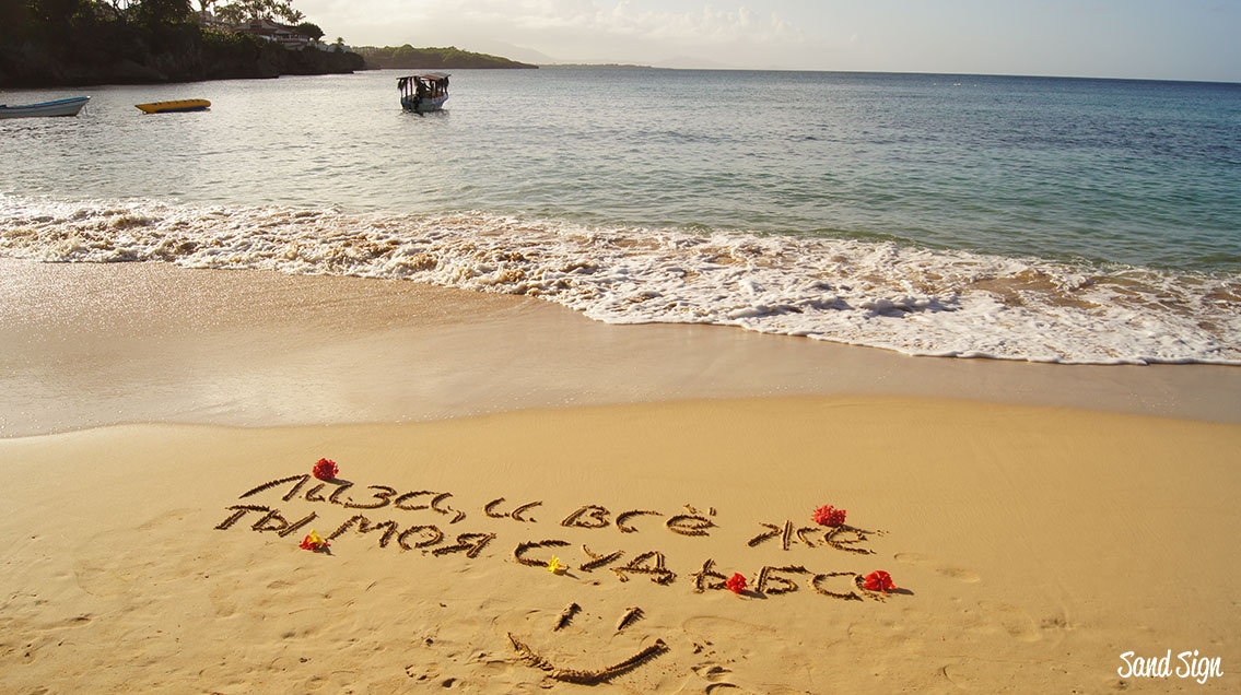 Sand Sign — это послание для близкого человека, специально оставленное на песке в экзотических странах.